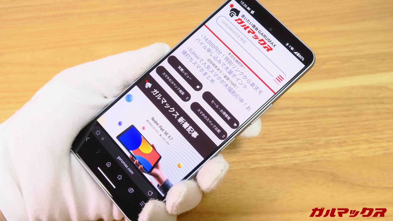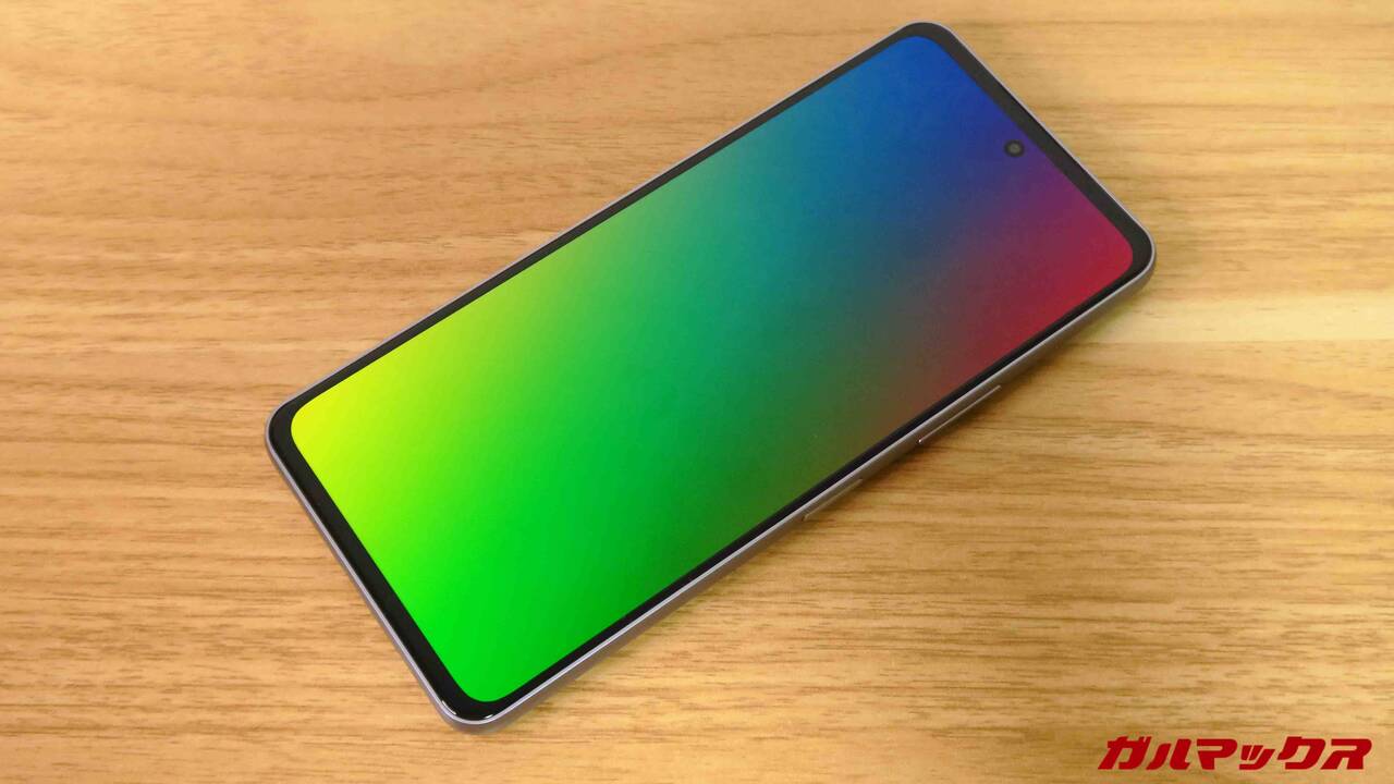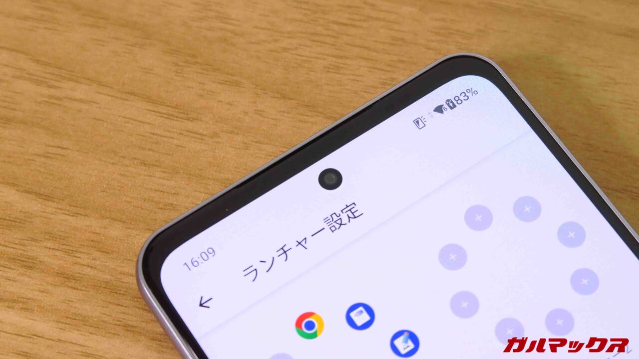 お前本当にarrowsか?って思う部分その1。ディスプレイが豪華。形状はトレンドに則り中央パンチホールデザインで古臭さを感じず、有機EL採用で輝度も明るめでした。
