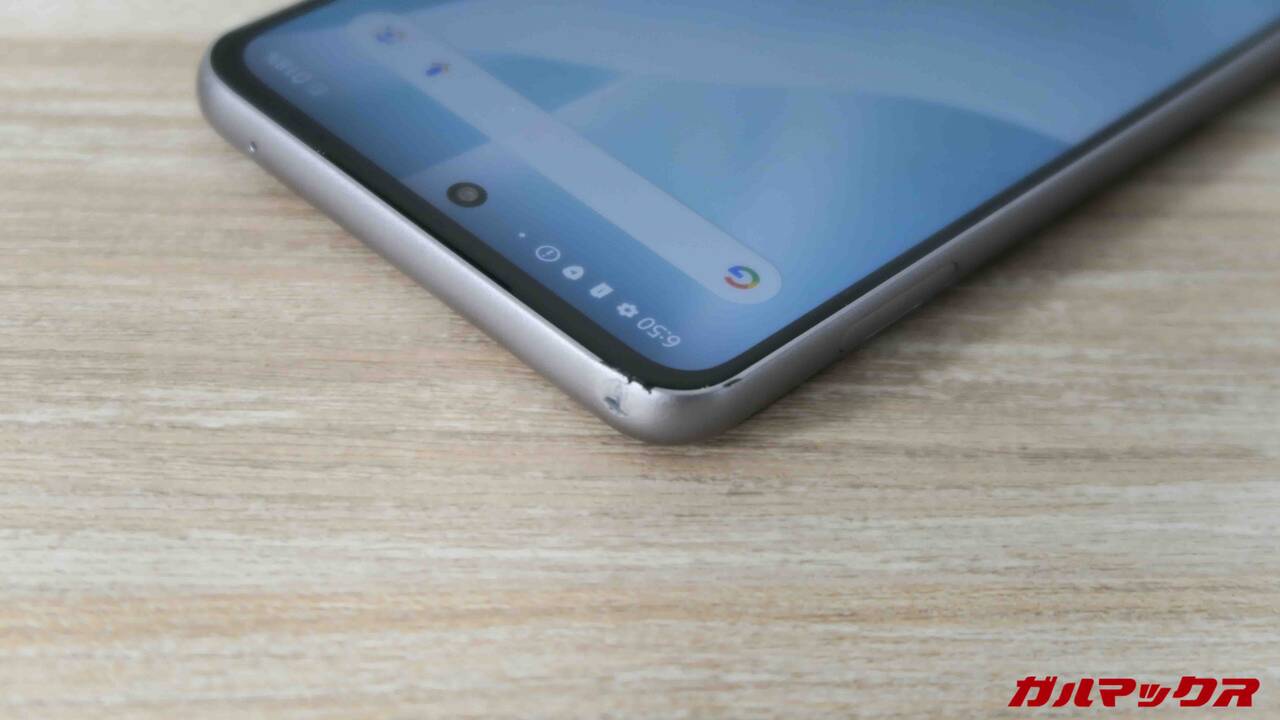 ▼また画面四隅はごく僅かに盛り上がっており、これにより画面へのダメージを低減するというのもGood。↓