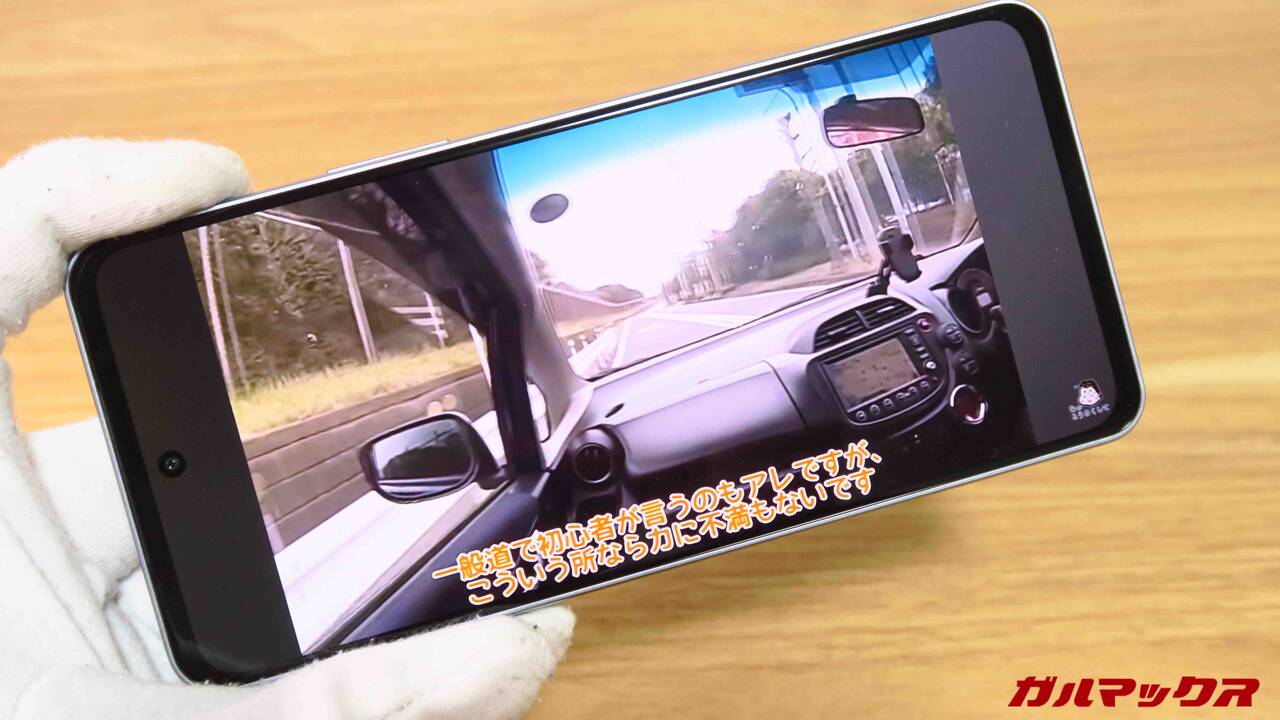 ▼有機ELなので視野角もバチクソ広い。なおデフォルトの画面設定”ナチュラル”は若干色が薄いんで、自動調節ってのにしとくのがオススメです。こうすると色鮮やかになるぞ!↓