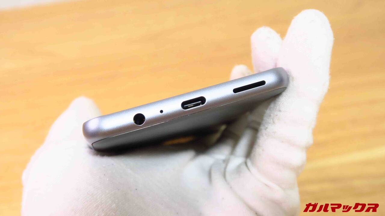 イヤホンジャック端子もしっかりあるのが日本ブランドのいいところよね!この点はSonyのXperiaやSHARPのAQUOSシリーズにも共通する良さ。位置も下部配置というのが好感度高いです。ポケットに入れたときに収まりがいいし‥