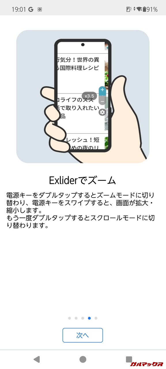 ▼Exlider(エクスライダー)は指紋センサーを上下に動かすことでページスクロールやズームができるという機能。Xとか2ちゃんのSSサイトとかの流し見でめっちゃ使える。↓