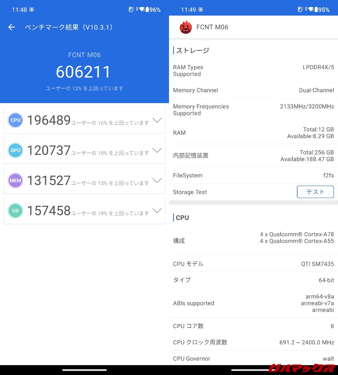 筆者が使っているSnapdragon 865搭載機は70万点ほどで、その差は10万点ほど。ゲーム性能自体は高くないとはいえ、ここまで来ると日常使いにおいてはハイエンドと変わらんぐらいサクサクよ。