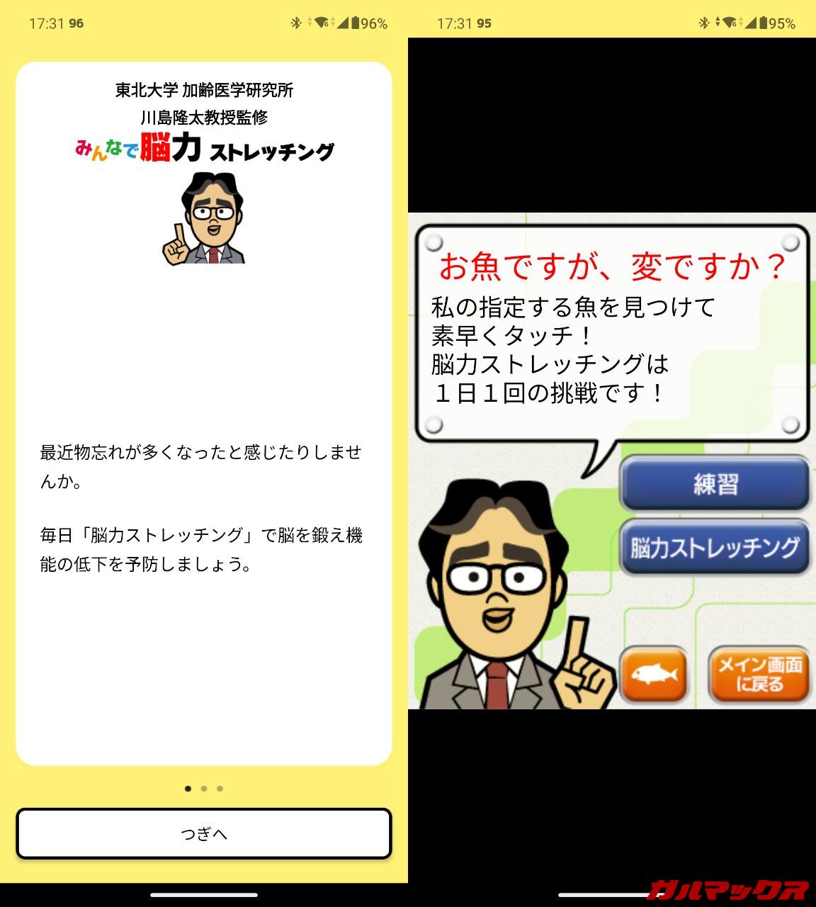 ▼また脳年齢でおなじみの川島隆太教授監修の脳トレアプリも入ってました。いくつかのミニゲームが遊べますぞ!暇つぶしの脳トレってのもアリかもしれん。↓