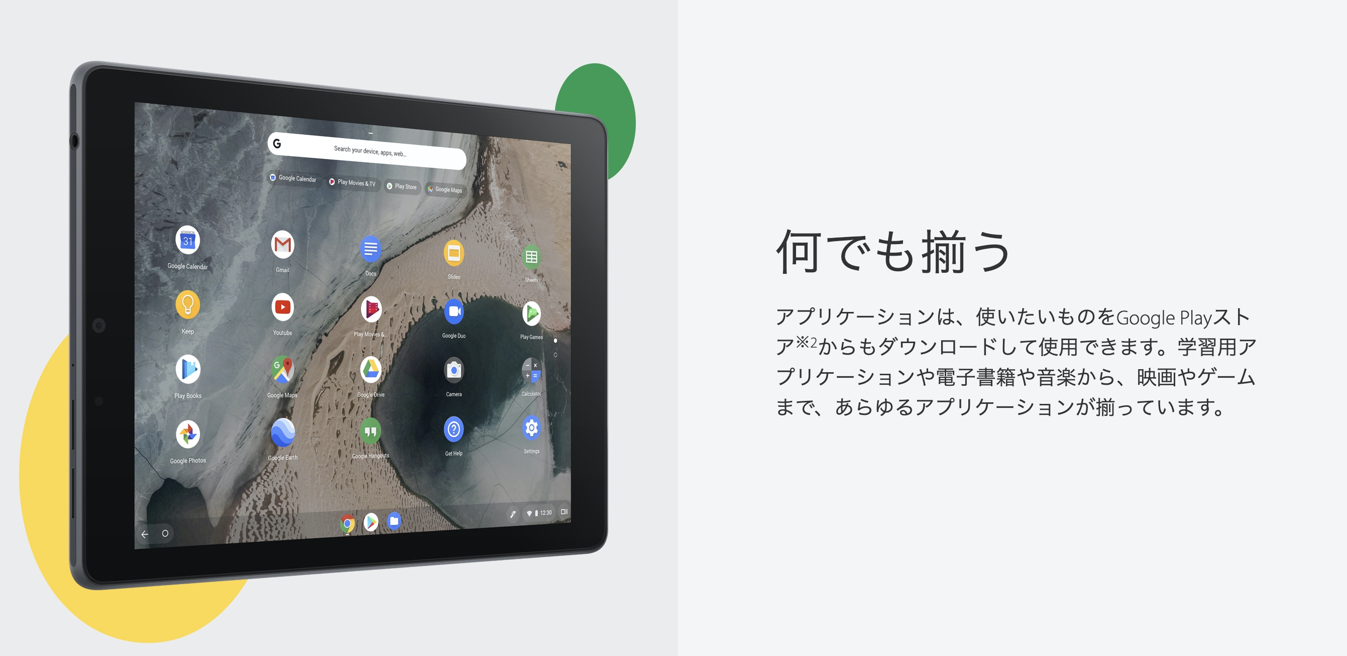 ▼少々気になるのがアプリ関連。調べてみるとGoogle Playストアに対応しているのでアプリが少なくて困ることもなさそう!↓