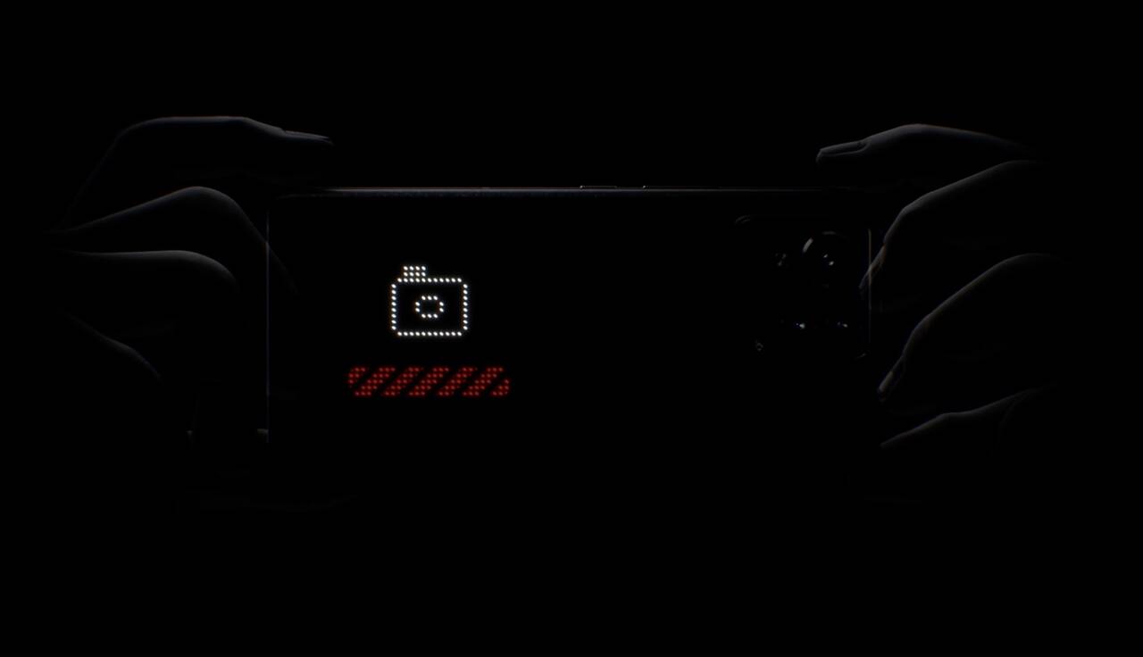 ▼上の画像には不自然に右親指に3つの水滴が見えますが、別動画では背面のドットアニメーションでカメラ撮影のカウントダウンの様子が紹介されていることから背面であることが伺えます。↓