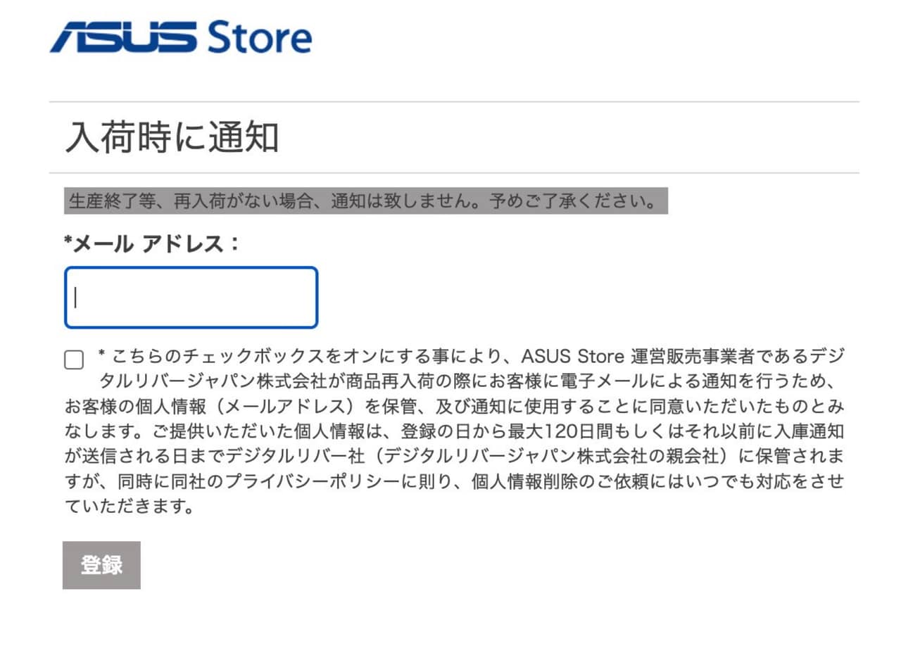 ASUS Outletでは販売の形式上、商品の入荷が不定期なのでこういった機能もしっかりと活用して気になるASUS製品をお安く買ってみてはいかがでしょうか!