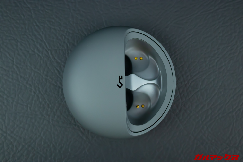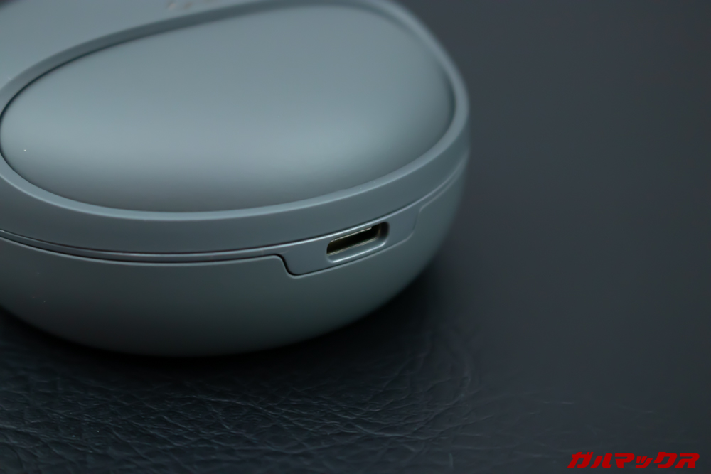▼充電ケースには有線で充電するためのUSB Type-C端子や4段階のバッテリーインジケータも備わっております。↓