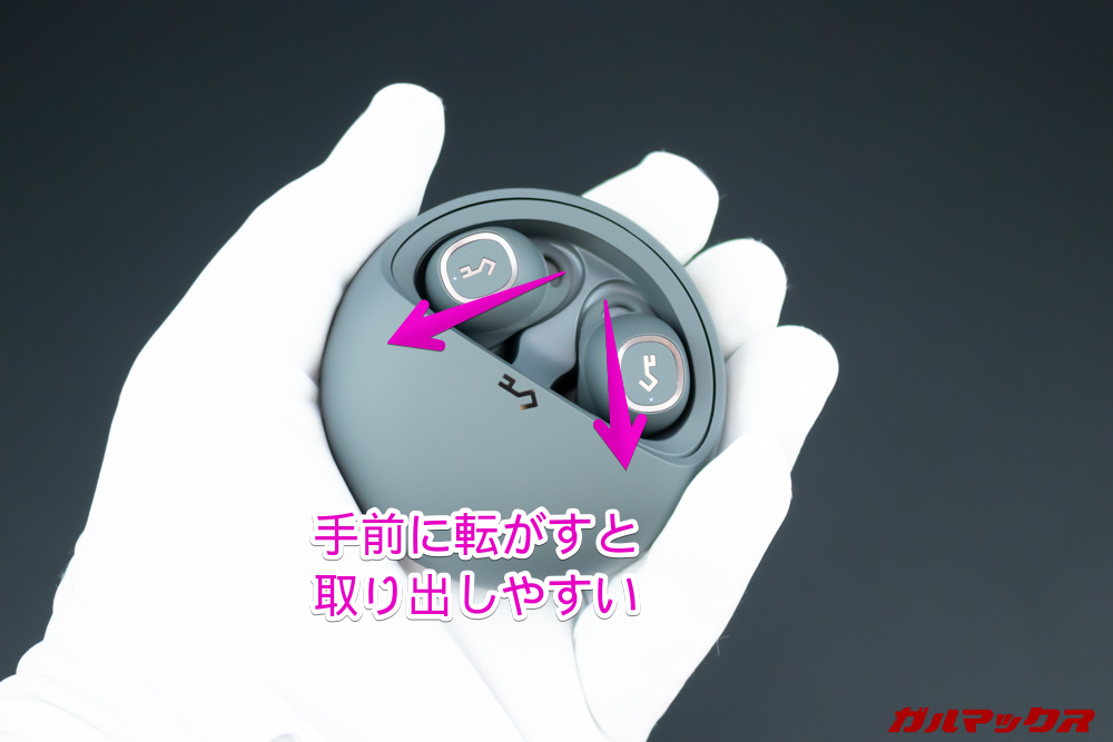 ケースからイヤホンを取り出す時は転がす感じが取り出しやすい