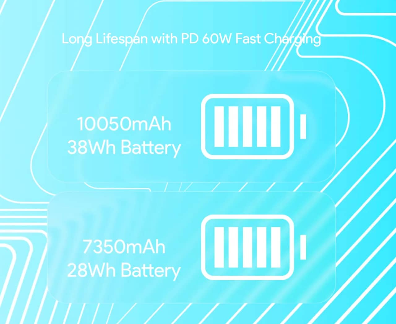 ▼バッテリー容量は通常版が10,050mAhで薄型モデルは7,350mAhとなっています。最大60Wの急速充電にも対応。容量はなまじ小型なだけに控えめで電池持ちもあんまり良くは無さそうに見えるが‥どうなんでしょうかね。↓
