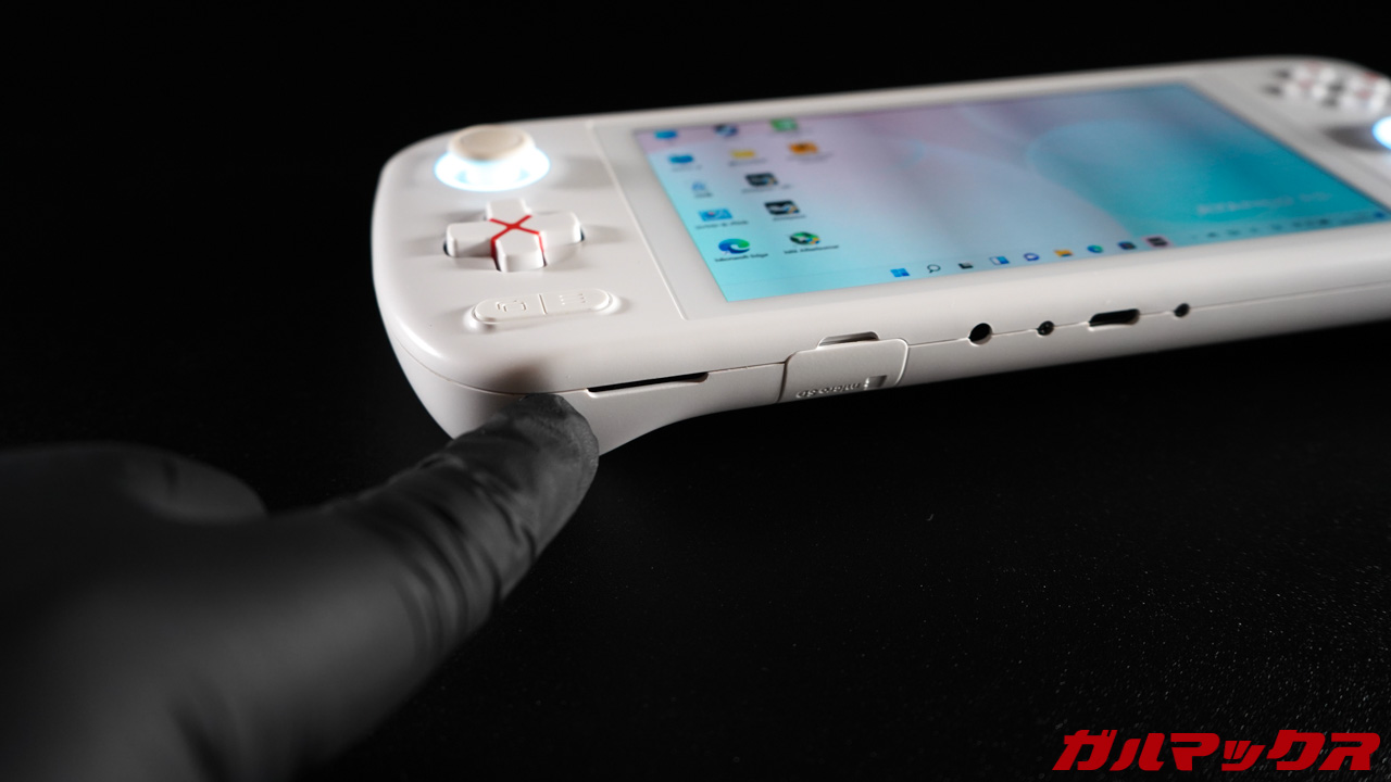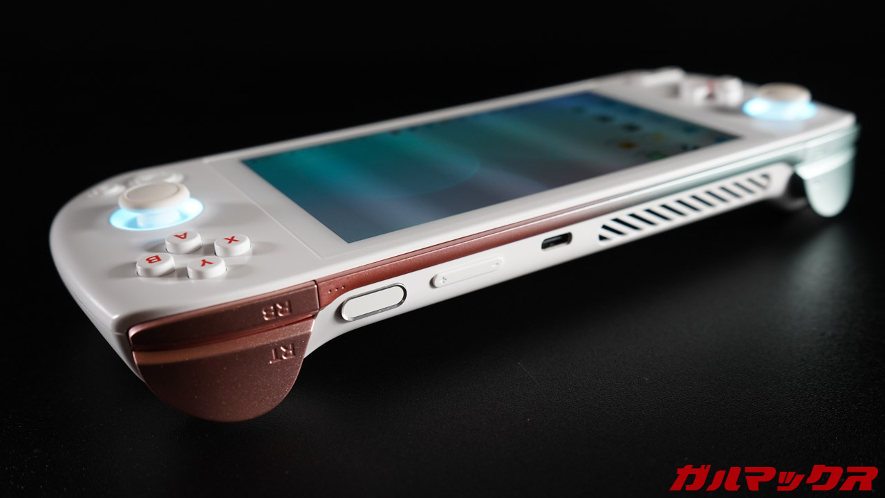AYANEO AIRの背面には大型の空冷ファンが備わっていてフルパワー時は「めちゃ冷えまっせ!」と言わんばかりの回転音と共に排気口からブワッと熱風が吹き出す。冷却性能はこの筐体サイズから考えれば非常に高い。