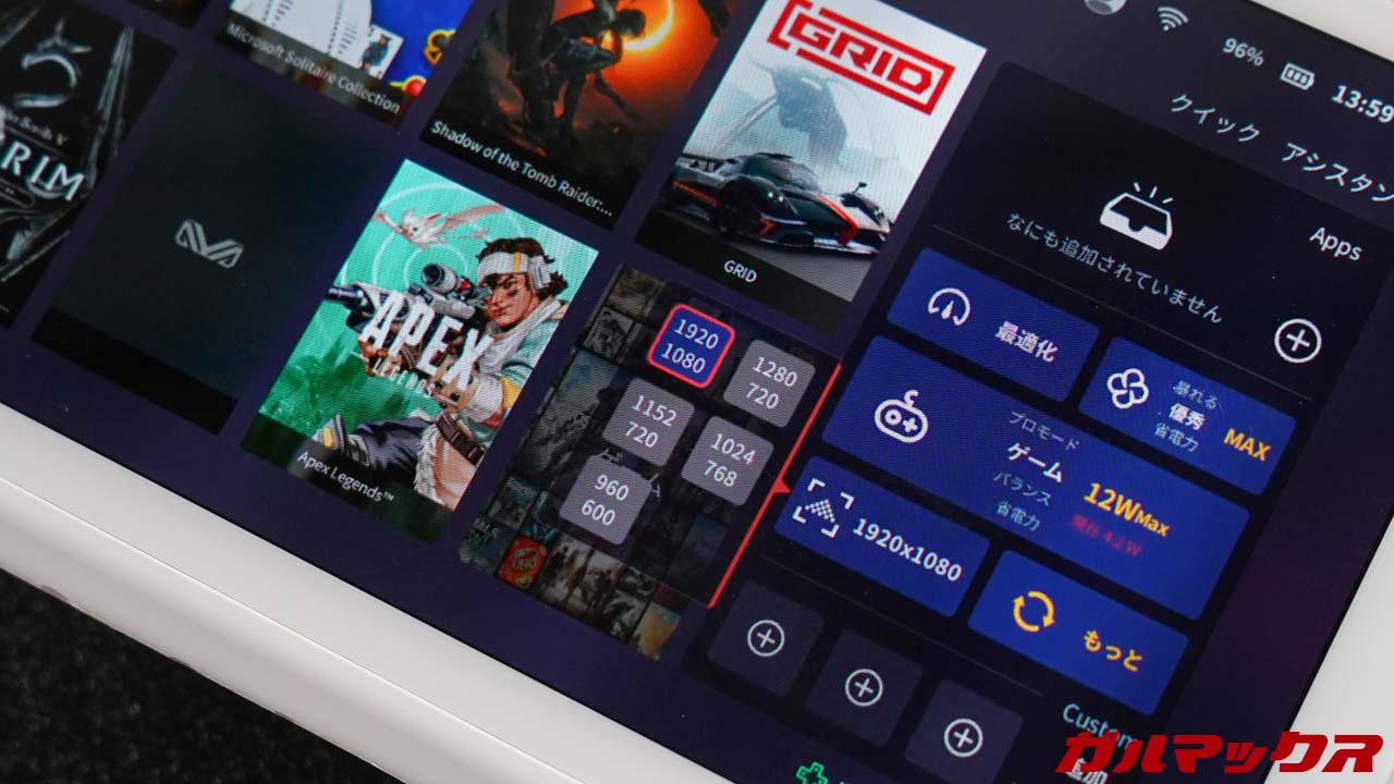 AYANEO AIRはFHDディスプレイを搭載しているが、ゲームはGPU性能的にHD以下が多くなる。いちいち解像度を変更するのが面倒である。そんなときにもAYA Spaceなら・・・