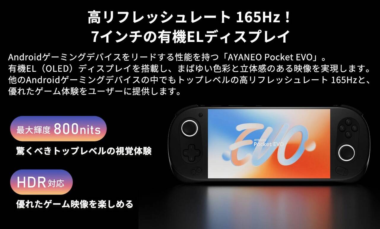 AYANEO POCKET EVO:165Hzリフレッシュレート表示対応ハイエンドマシン
