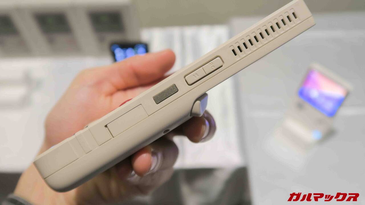 ▼側面と背面デザインはこんな感じ!左側のジョグダイヤルボタンは回して音量を変えられます。押し込んでの操作も対応で、クルックルさせんの気持ちいいやつ。↓