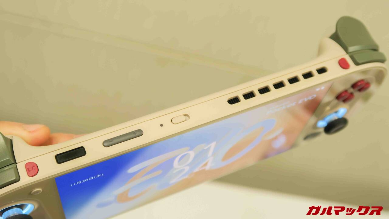 ▼さらにボディと画面までの黒いベゼルが非常に薄いのもハイエンド感あって良いですねぇ(`・ω・´)。この点も高級感をバチバチに感じさせ、筆者が見てきたハンドヘルドの中でもトップ級ですよ。↓