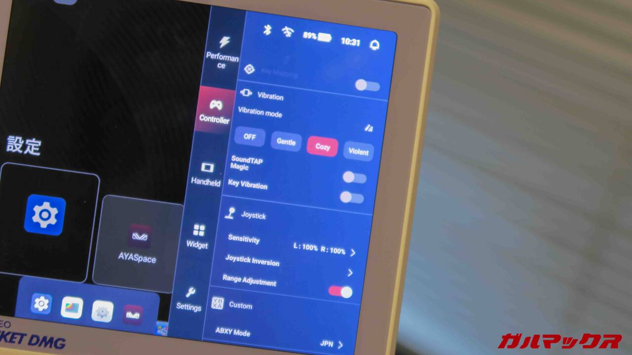 ▼超ゲーム機チックな見た目ですがこれでもAndroidデバイス。Playストアもありますし設定項目もAndroidのそれでした。マジでこういうの見ると異質感あって面白いんだよなあ。↓
