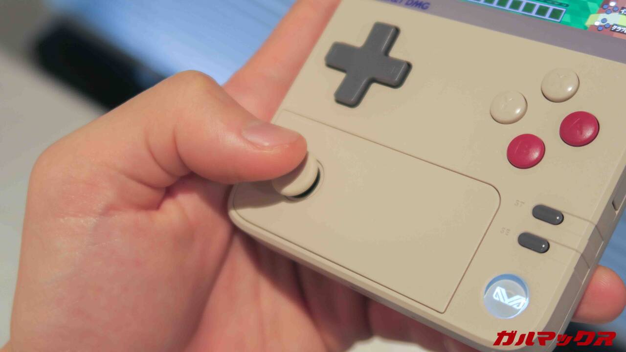 ▼ボタン部分はゲームボーイそのものですが、下部にはLスティックとタッチパッドが搭載されています。「こいつただもんじゃあねえ雰囲気」をバッチバチ感じられる。↓