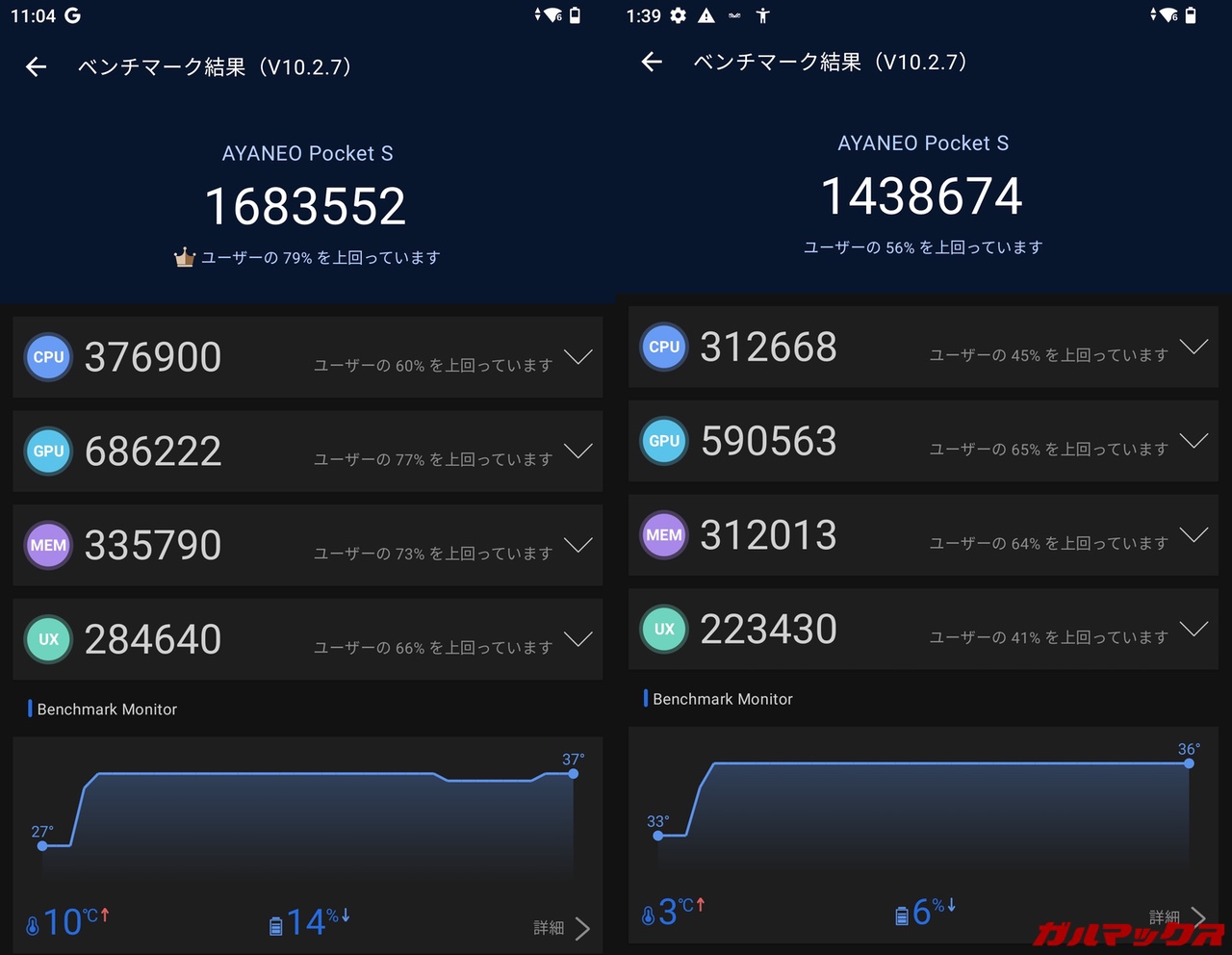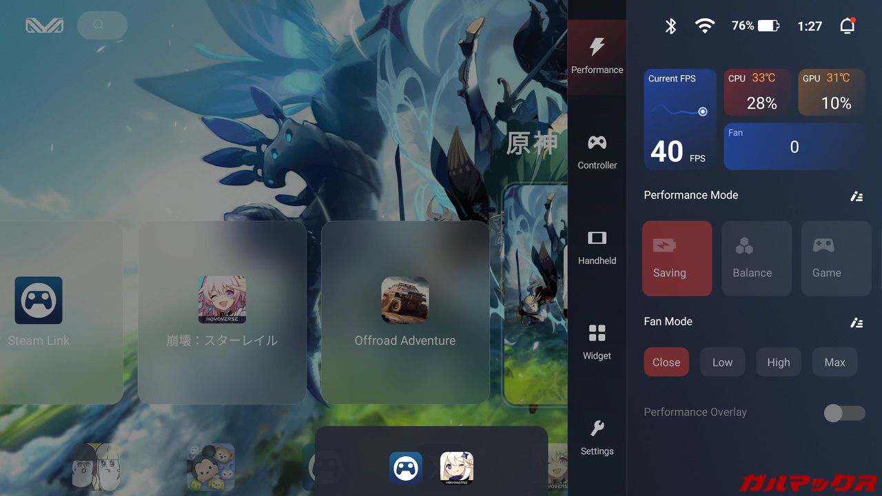 ゲーミングスマホも同様の機能はありますが、ちゃんと性能変わってる?と思うこともしばしば。一方AYANEO Pocket Sはパフォーマンス設定を切り替えるとしっかり反映されてます。
