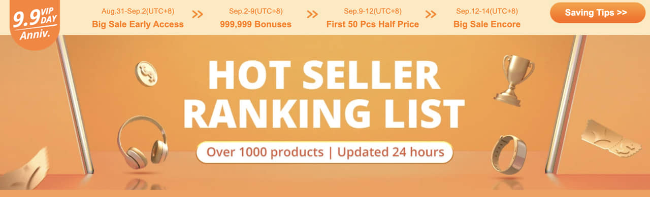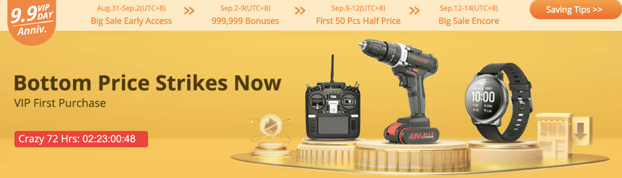 Banggoodの14周年記念は9月12日まで本番セールで、「特に人気の高い製品が激安で大放出されるセール期間」なので、毎日巡回して激安製品をチェックしよう!
