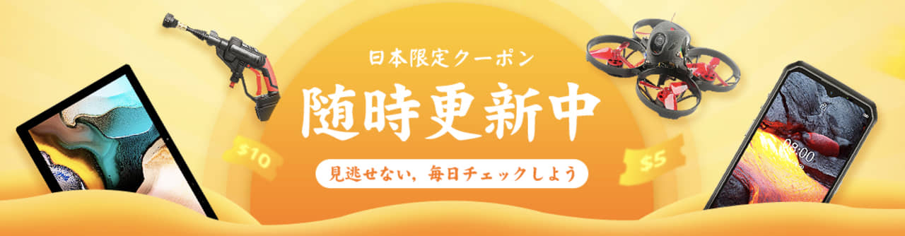 Banggoodは日本でも人気のネットショップ!ってことで、日本向けのクーポンセール会場も用意されております。クーポンセールってことで、ページに記載されているクーポンを適用することで割引価格となります!