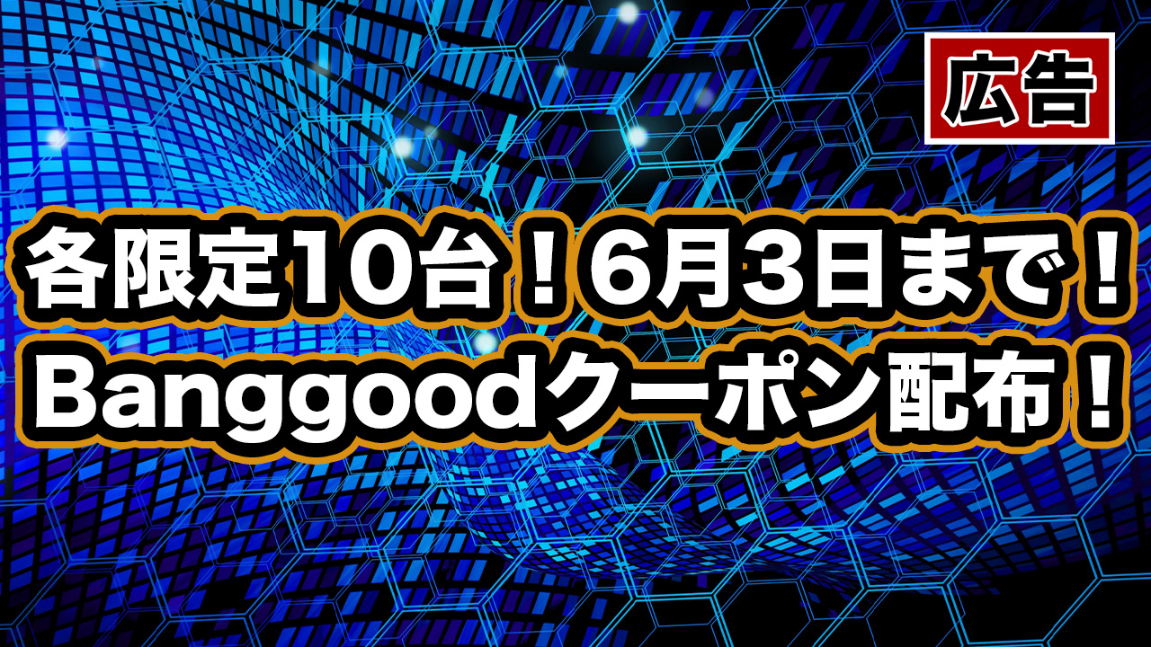 海外ネットショップのBanggoodで各限定10台までのお得なクーポンを貰ったぞ。有効期限は6月3日までなのでチェックしてみてくれ!