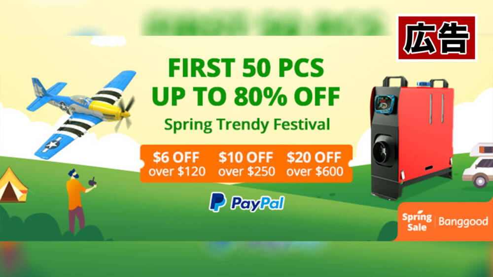 Banggood春のセール開始!18日以降にPayPal支払いでお得!26日まで!