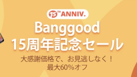 ガルマックスでも巡回している海外通販サイトのBanggood。なんか15周年だそうで少し前からセールをやっています。