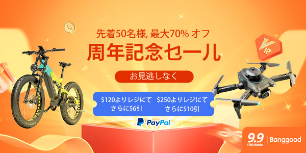 海外ネットショップのBanggoodが17周年を記念したセールを開催します。17年って凄いですね。おめでとうございます。セールに合わせて様々な製品が割引になりますが、今回はPayPal支払いだと結構大きな割引があるので準備しておきましょう。