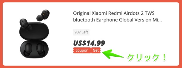 ▼まずはcoupon Getをクリック!その後は製品画像をクリックして製品ページに移動しましょう!↓