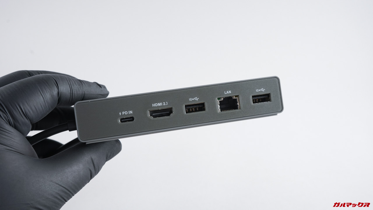 ▼背面には10Gbps対応のUSB-Aが2つ、HDMI2.1が1つ、2.5Gbps対応の有線LANポート、PD100WのUSB-Cを搭載。↓