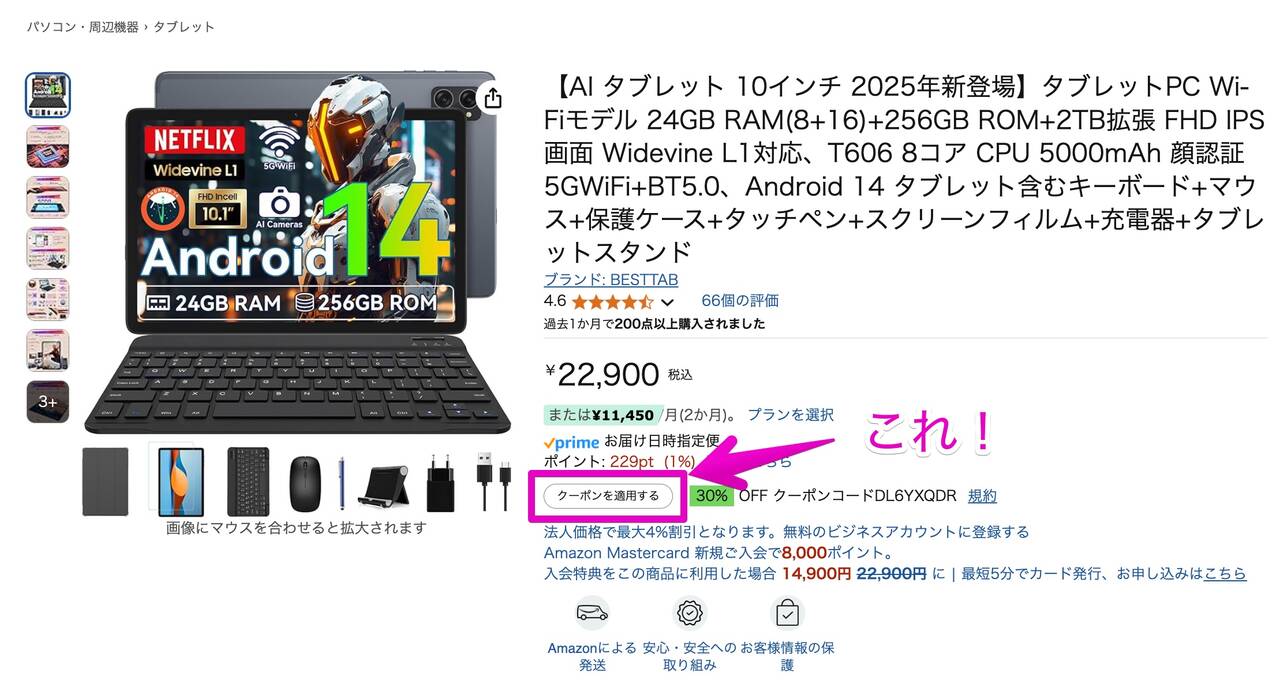 ▼Amazonの製品ページに記載されている「クーポンを適用する」を押してからカートに追加!↓