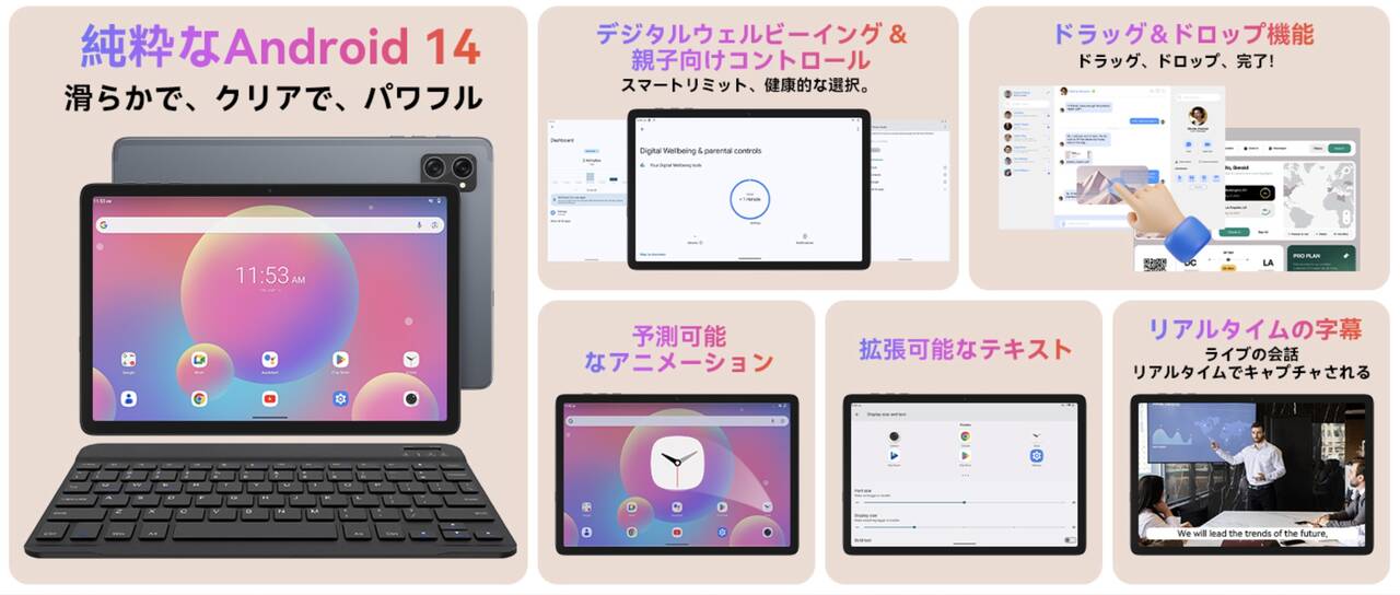 ▼OSはAndroid 14を搭載。リアルタイム字幕機能が搭載されているので海外で行われるスマホ発表会などもより一層楽しめそう…!↓