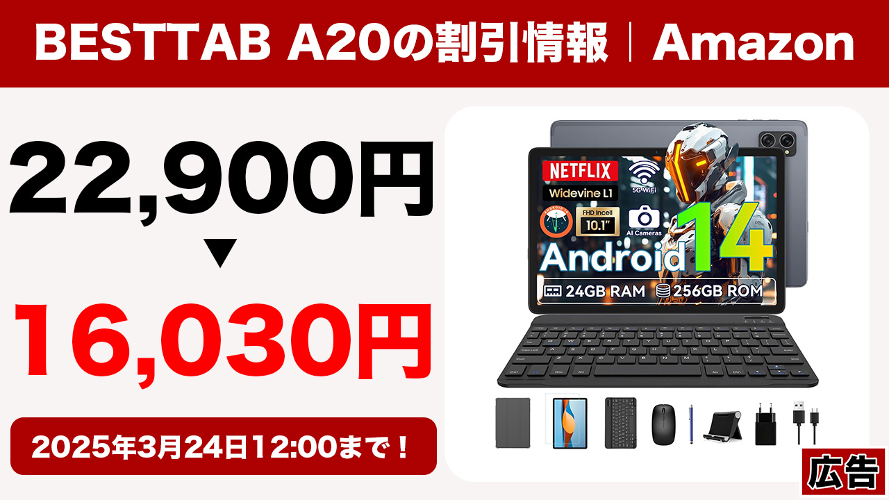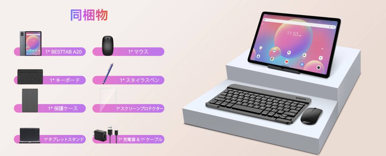 付属品が超豪華な10型タブレット「BESTTAB A20」が3月24日まで22,900円→16,030円!