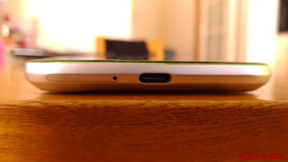 ▼下部はUSB Type-C端子とSIMスロット。↓