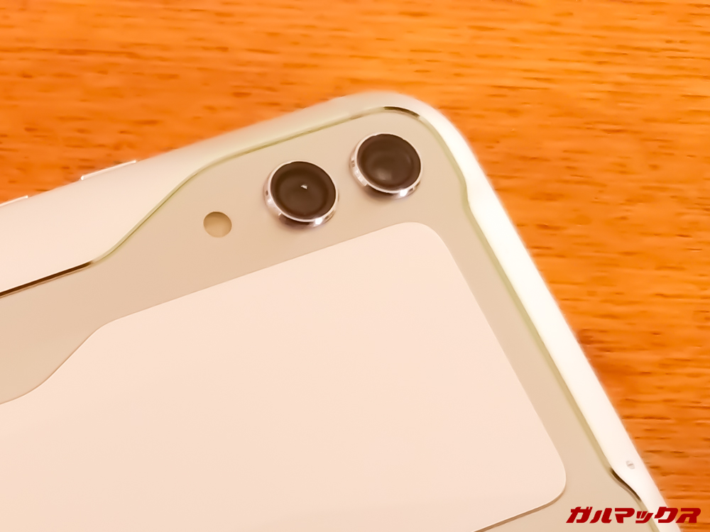 ▼背面のカメラレンズはやや出っ張ってますが中央部分の盛り上がりよりは薄いので置いた時にぐらついたりはしません。↓