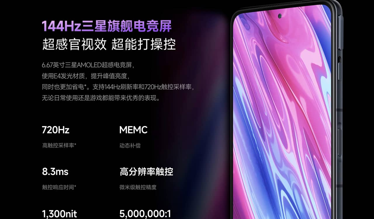 ▼ディスプレイは6.67型のFHD+で有機EL。リフレッシュレートは144Hzでタッチサンプリングレートは720とゲーミングモデルとして申し分なし。↓