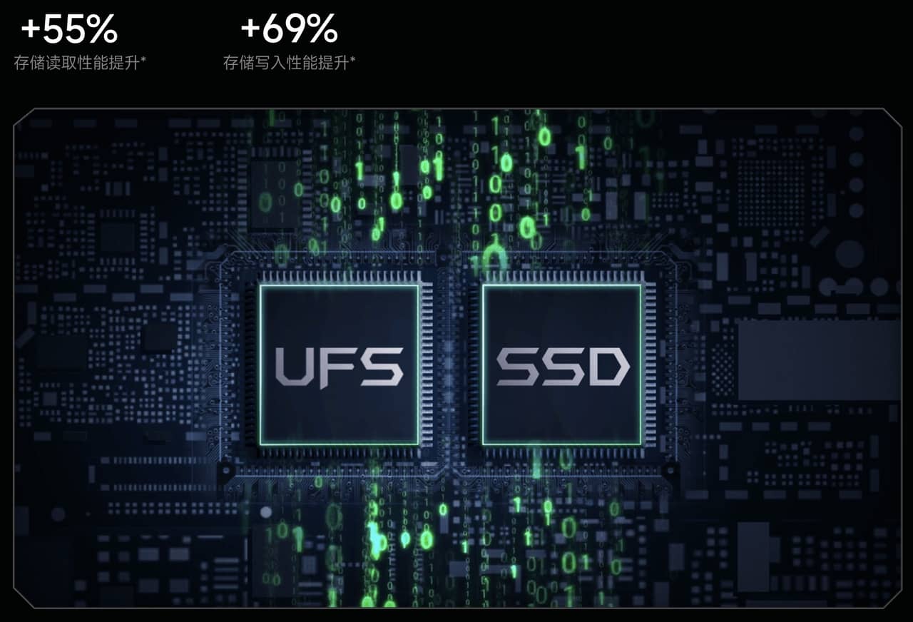 ▼ストレージはカスタムNVMeとUFS3.1フラッシュメモリによるRAIDシステムを搭載することにより従来よりも格段に読み書き速度がアップ。スマホでこの域のシステム要るのか(笑)↓