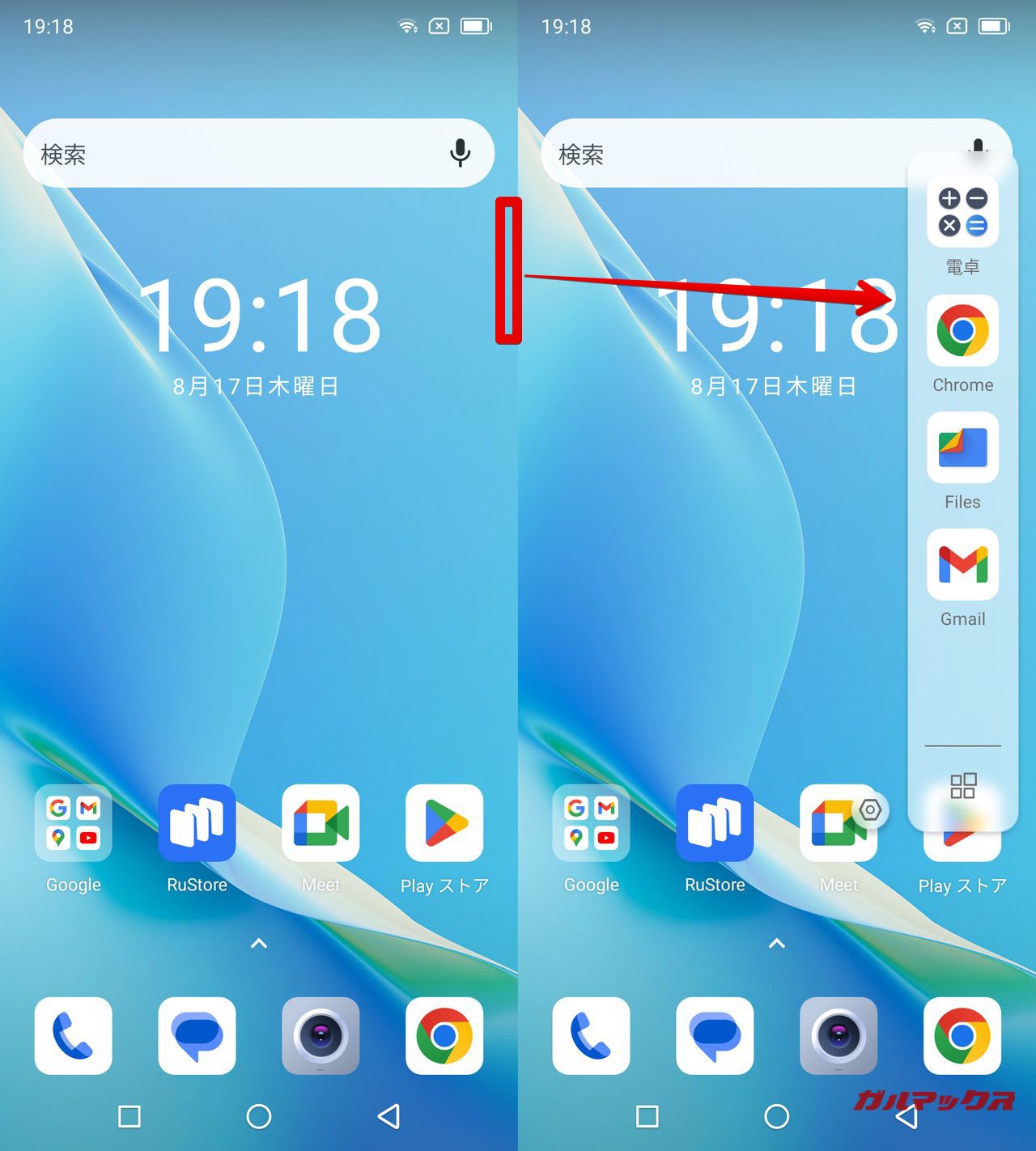 ▼ホーム画面は左がGoogle Discoverの配置となってます。↓