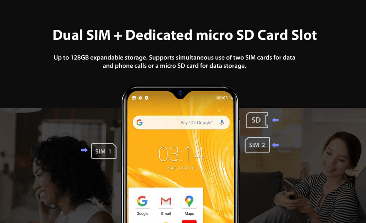 Blackview A60 PlusのSIMスロットタイプは他には見られない変わった独立タイプとなっております!一般的には1つのスロットに2つ3つがまとまって入るようなタイプなんですが、非常に独特な仕組みを搭載しているってのはかなり面白いもんですな。