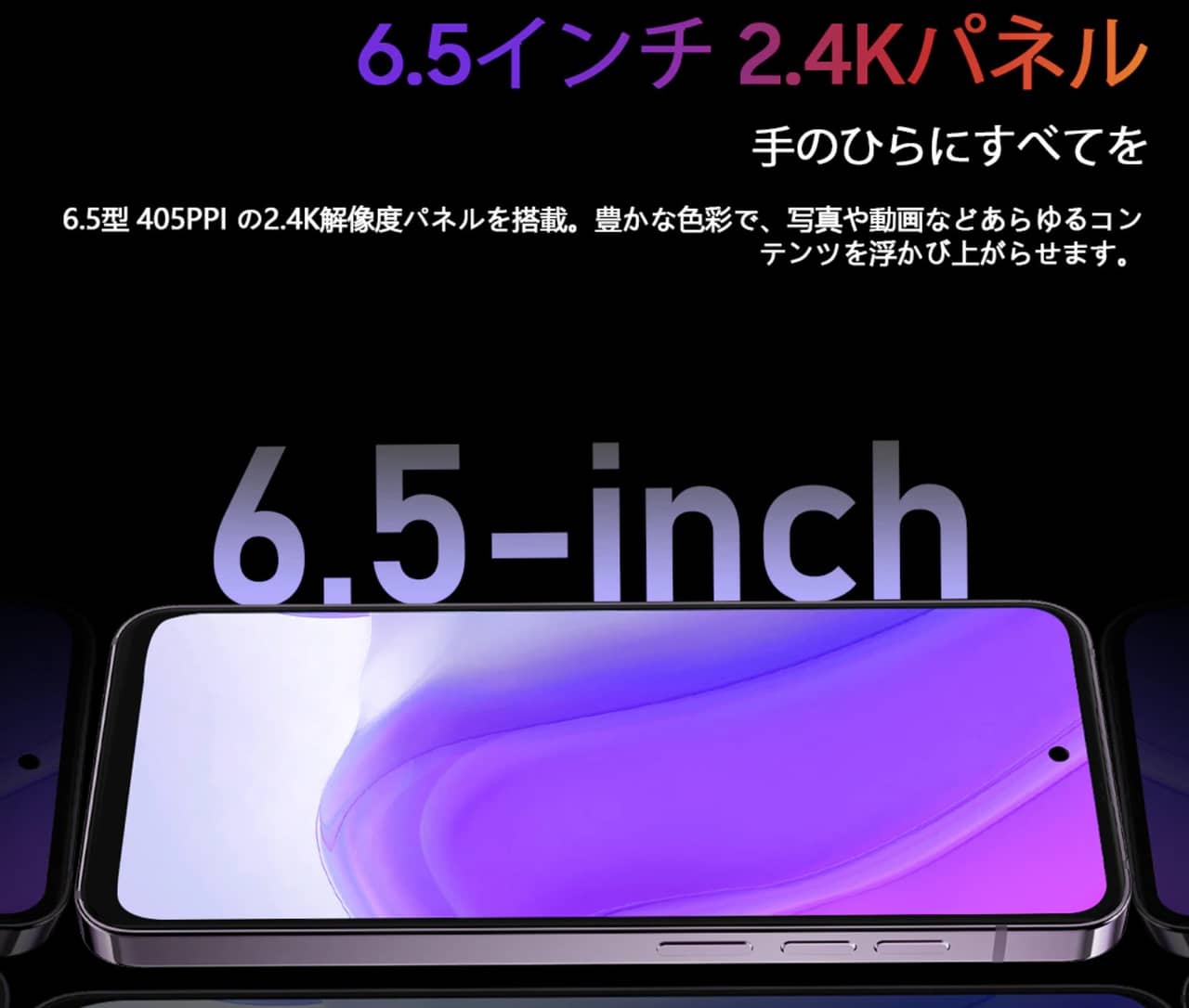 | 解像度 | 解像度:2,400×1080(FHD+) 画面比率:20:9 |