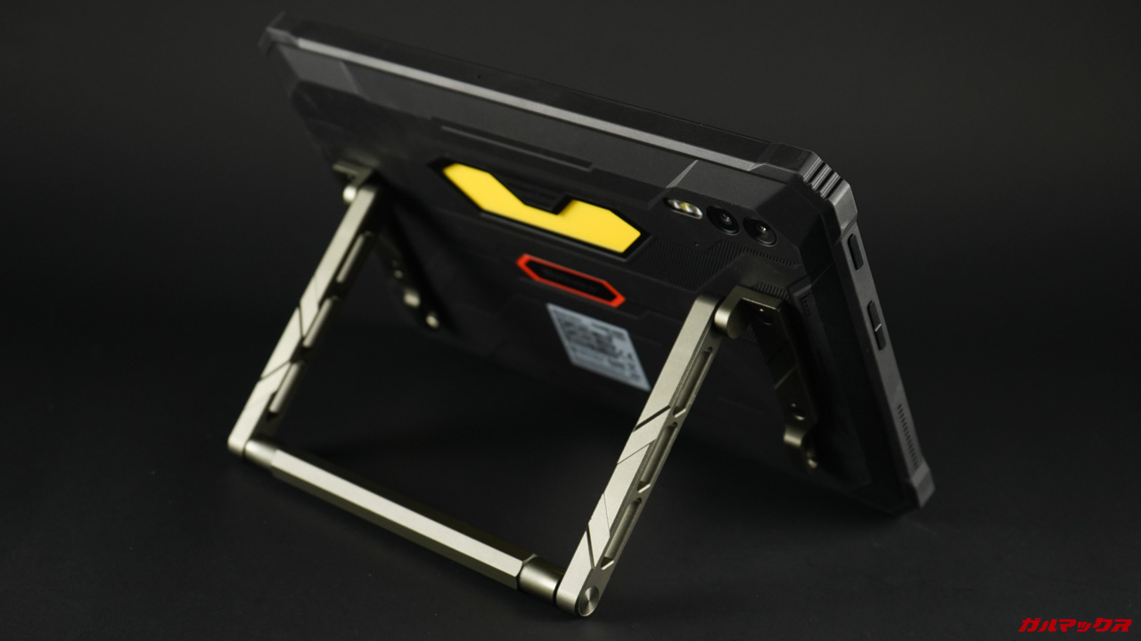 この重量は3万mAhというイミフなバッテリー搭載量と屈強なプロテクター、金属スタンドからなるもの。ニュースで鈍器のようなものと見かけたらコイツを思い浮かべるかも。
