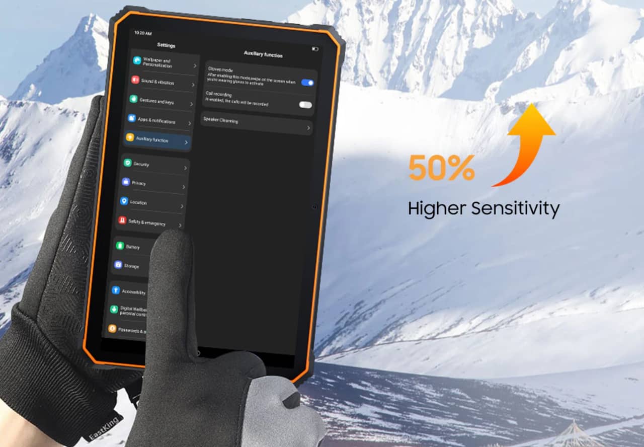 ▼ディスプレイは10.36インチ、解像度は2,000×1,200で視野角の広いIPS液晶を搭載。また手袋をつけながらでも操作しやすいグローブモードにも対応しています。↓