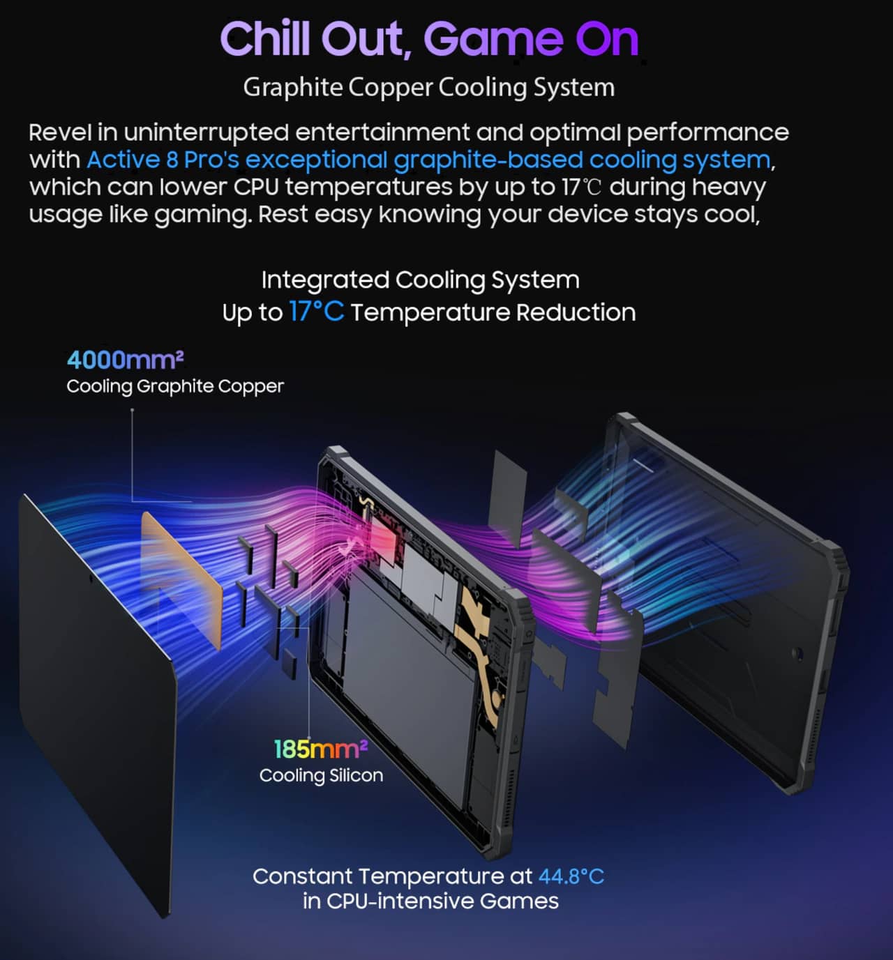 ▼また内部に冷却パネルを仕込んでおり、高負荷なアプリを動かしたり長時間撮影していたり炎天下の中動かしたりしても熱暴走しにくく出来ています。↓