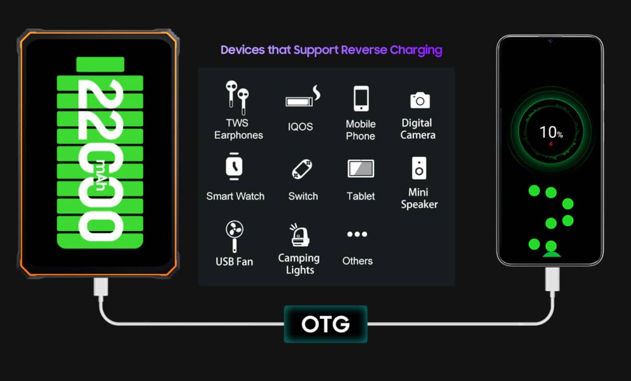 ▼逆充電にもバッチリ対応!Blackview Active 8 Proをモバイルバッテリーとしても使えます。↓