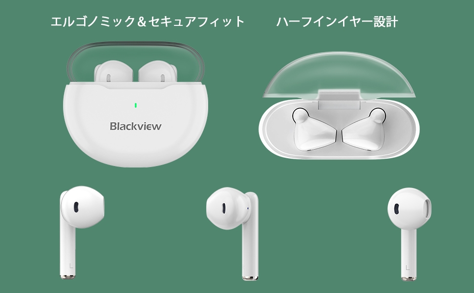 ▼Blackview AirBuds6はインナーイヤータイプの形状となっています!Amazonで取り扱っているカラーはホワイトの1色のみ。単体重量はわずか3gと軽量です!↓