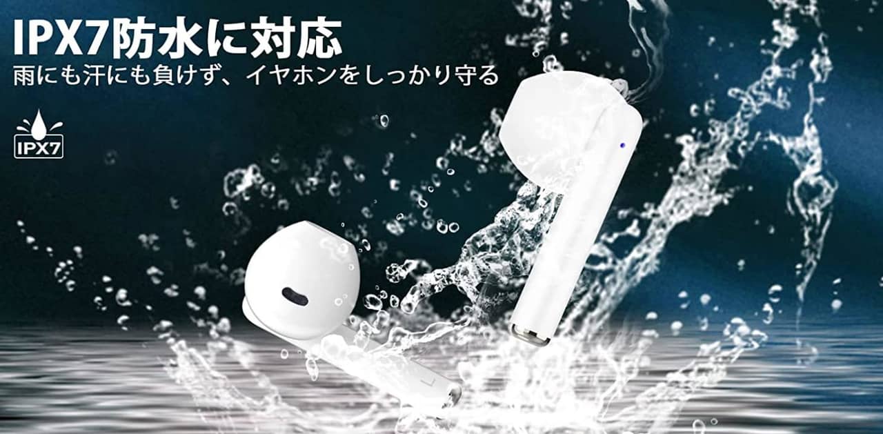 ▼またIPX7防水となっており雨や汗で濡れても壊れにくくなっています。安価ながらこういう部分もしっかりしているのは嬉しい。↓