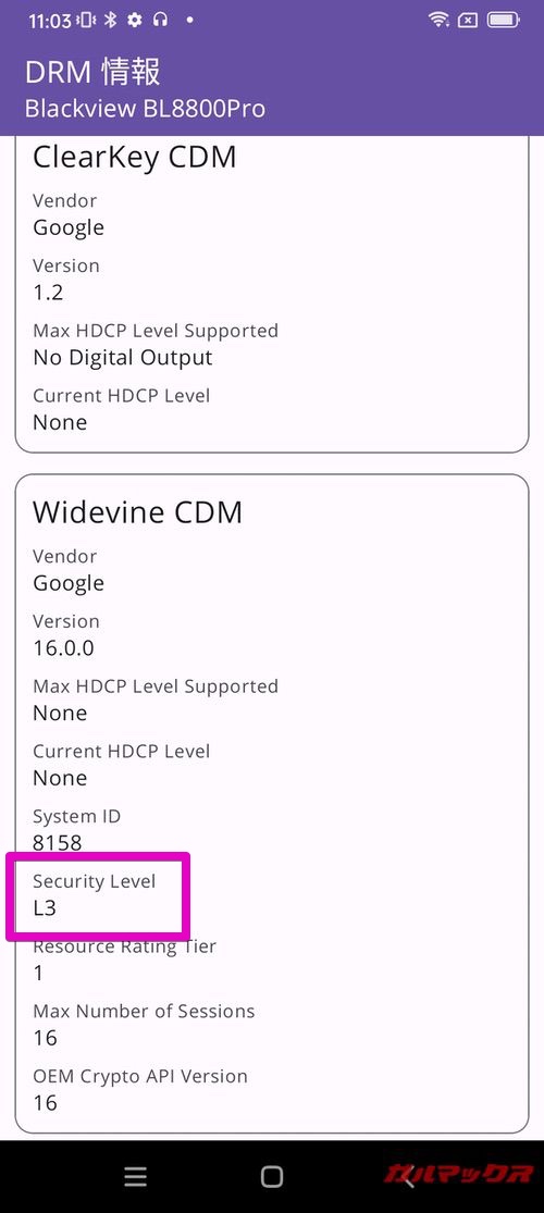 ▼理由はこれ。WidevineがL3なんですよね。↓