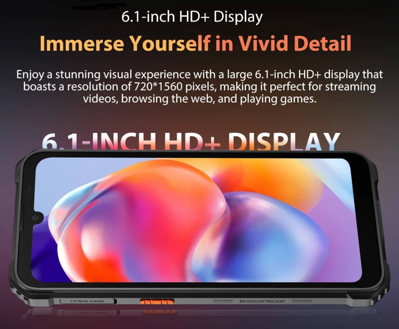 - 6.1インチのHD+解像度ディスプレイ