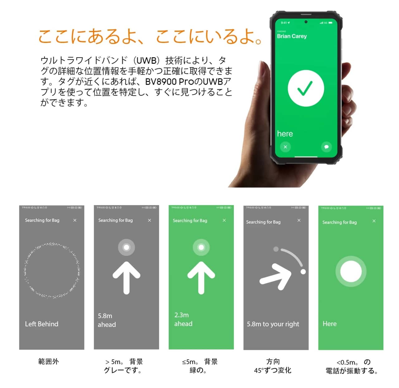 ▼Blackview BV8900 ProはUWB対応であることも大きくアピールしてます。対応する落とし物タグをiPhoneよろしく細かく捜すこともできるとのこと。サイフとか別スマホとかバッグ、リュックといったものに付けておけば紛失防止に役立ちそうですね。↓