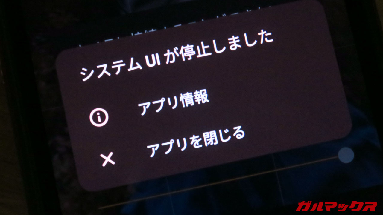 ▼そしてサブ画面を用いてアウトカメラで自撮りもできるんですが、これで撮影した瞬間システムUIが強制停止。撮影もできないし動作も不安定で使い物にならんです。↓