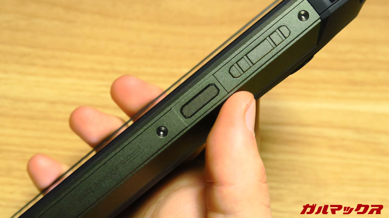 ▼タフネススマホで見かけられるマルチファンクションキーも搭載しているのもGood。ボタン自体も大きく手袋装着時でも非常に押しやすいです。↓